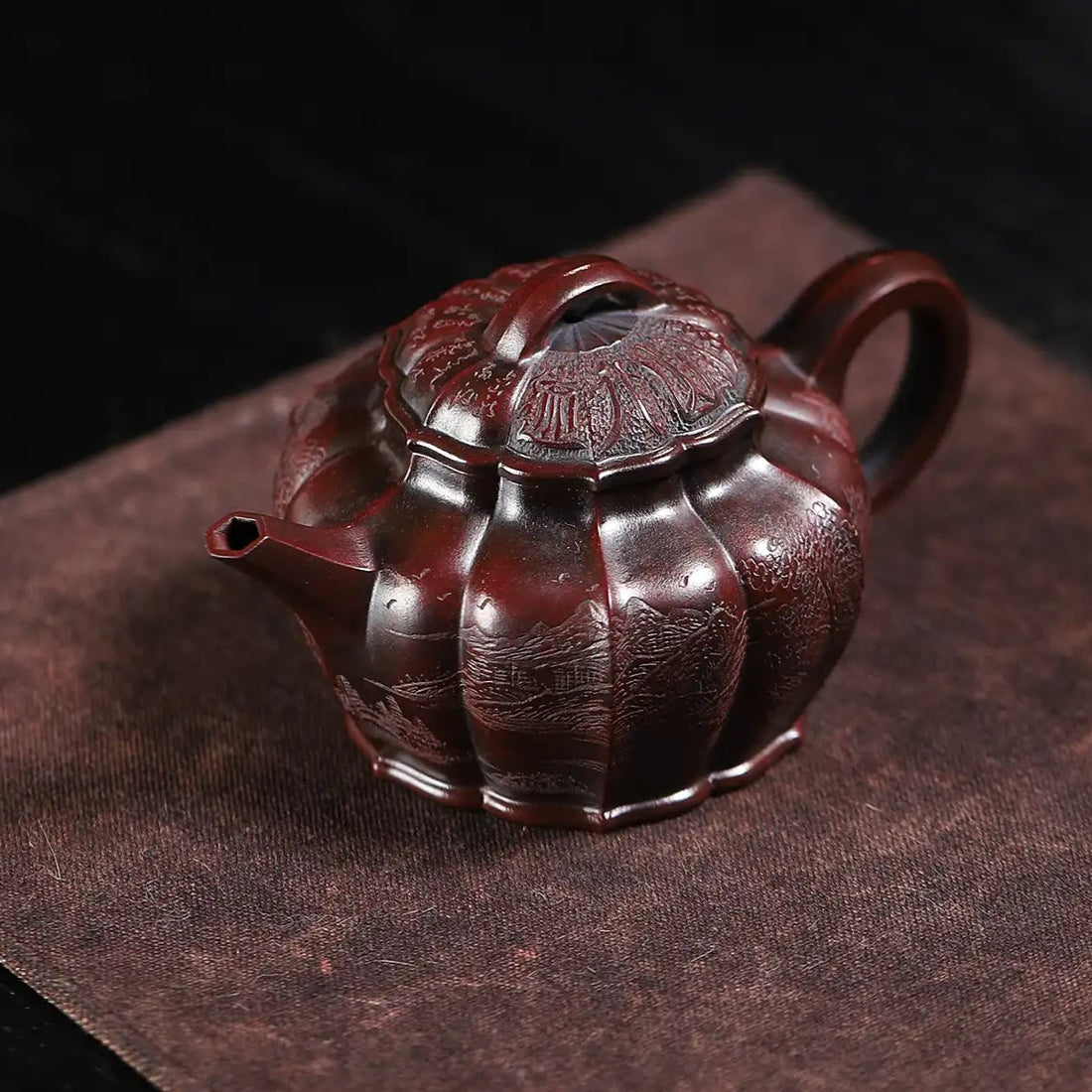 Mountain Stream Journey Carving Fully Handmade Zijinsha-Purple Clay Ribbed Yixing Teapot