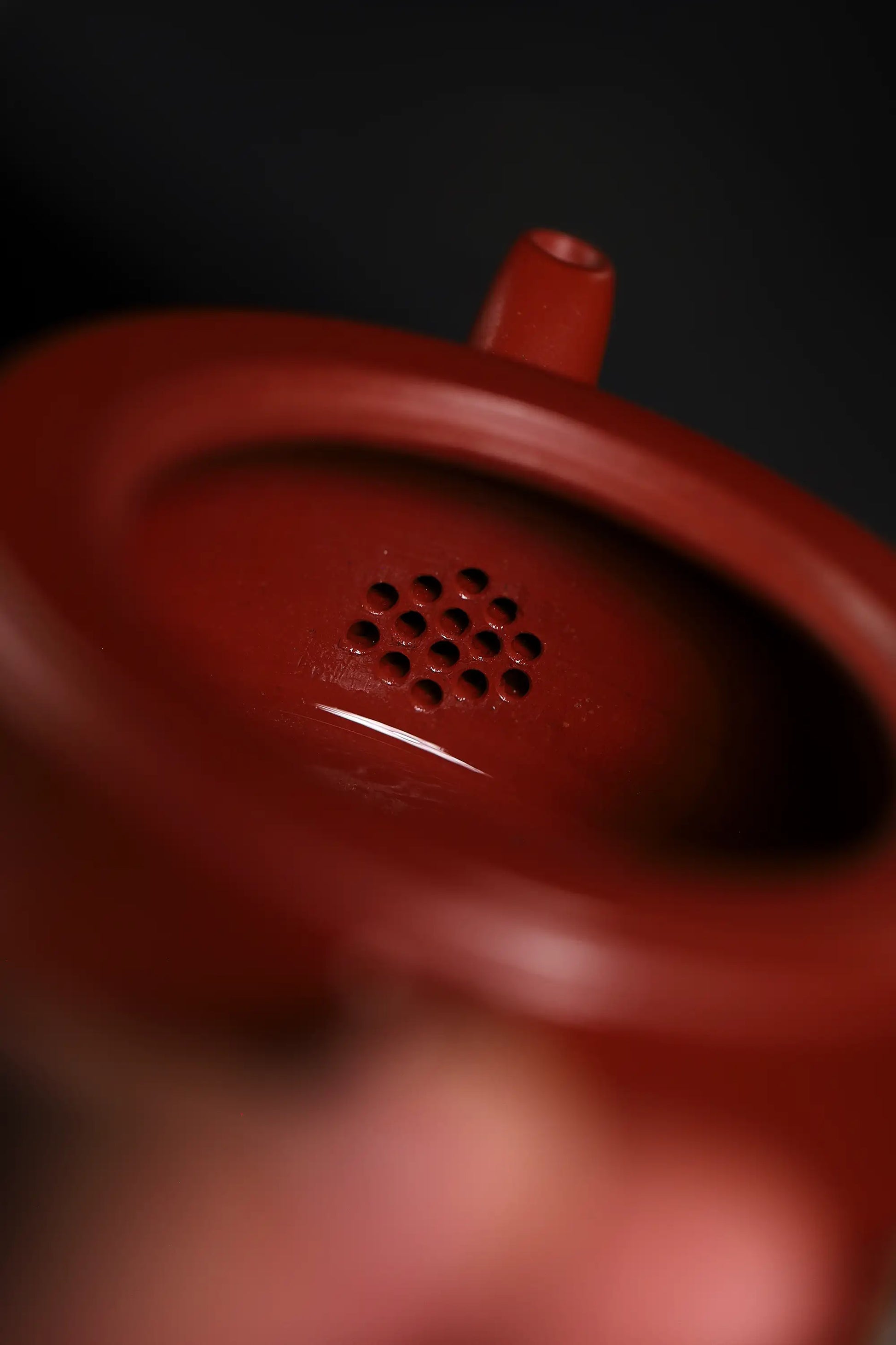 Crafted from authentic Yixing Zhu Ni (Vermilion Clay), this teapot is entirely handmade. The clay is fine and smooth, exhibiting a pure reddish hue. Using traditional slapping techniques, the artisan carefully shaped the bamboo segments, with the body, spout, handle, and knob all mimicking bamboo joints, showcasing perfect integration of natural form and craftsmanship.