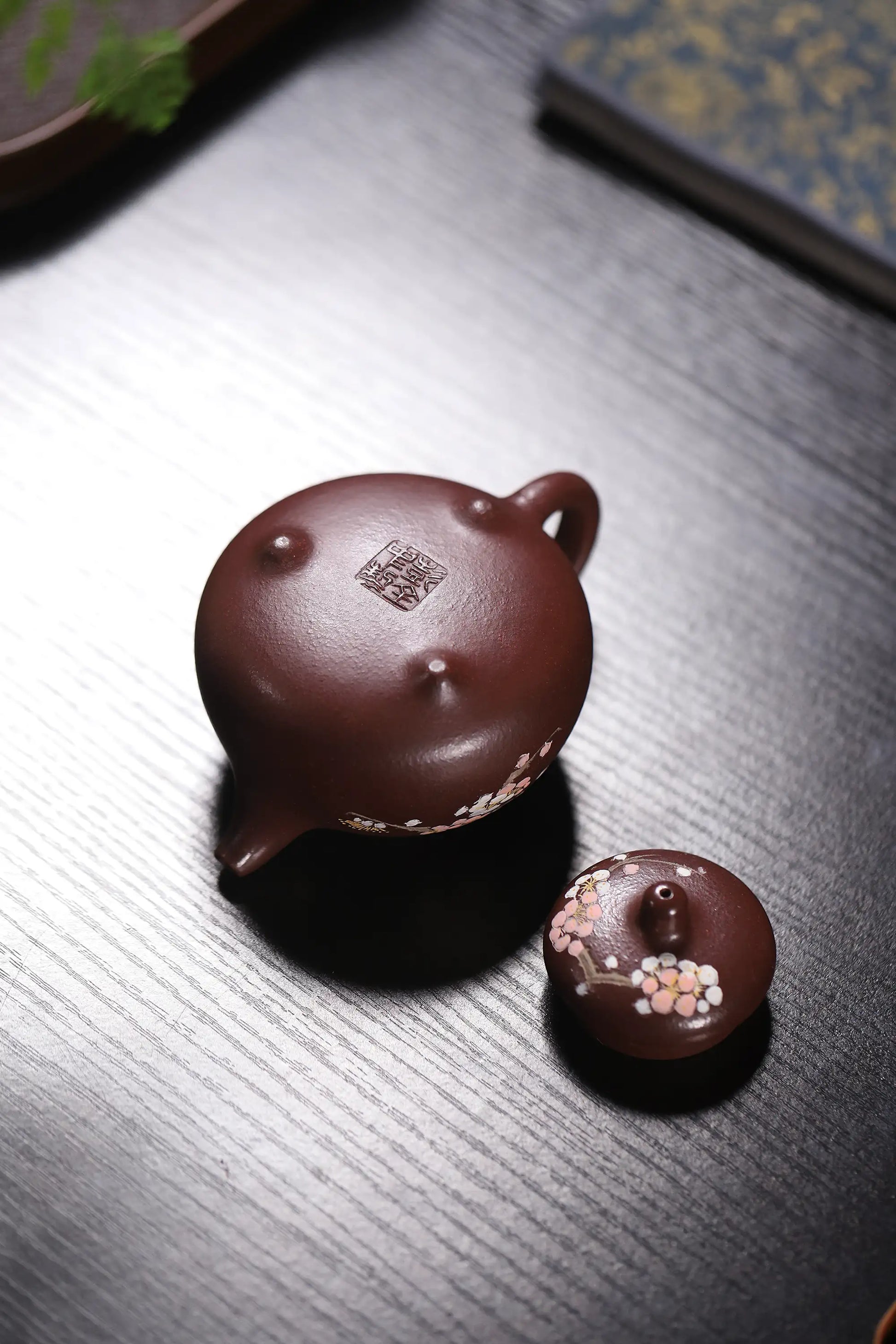 Cherry Blossom Clay-Painting Fully Handmade Red Bean-Purple Clay 'Ru Ding' Yixing Teapot