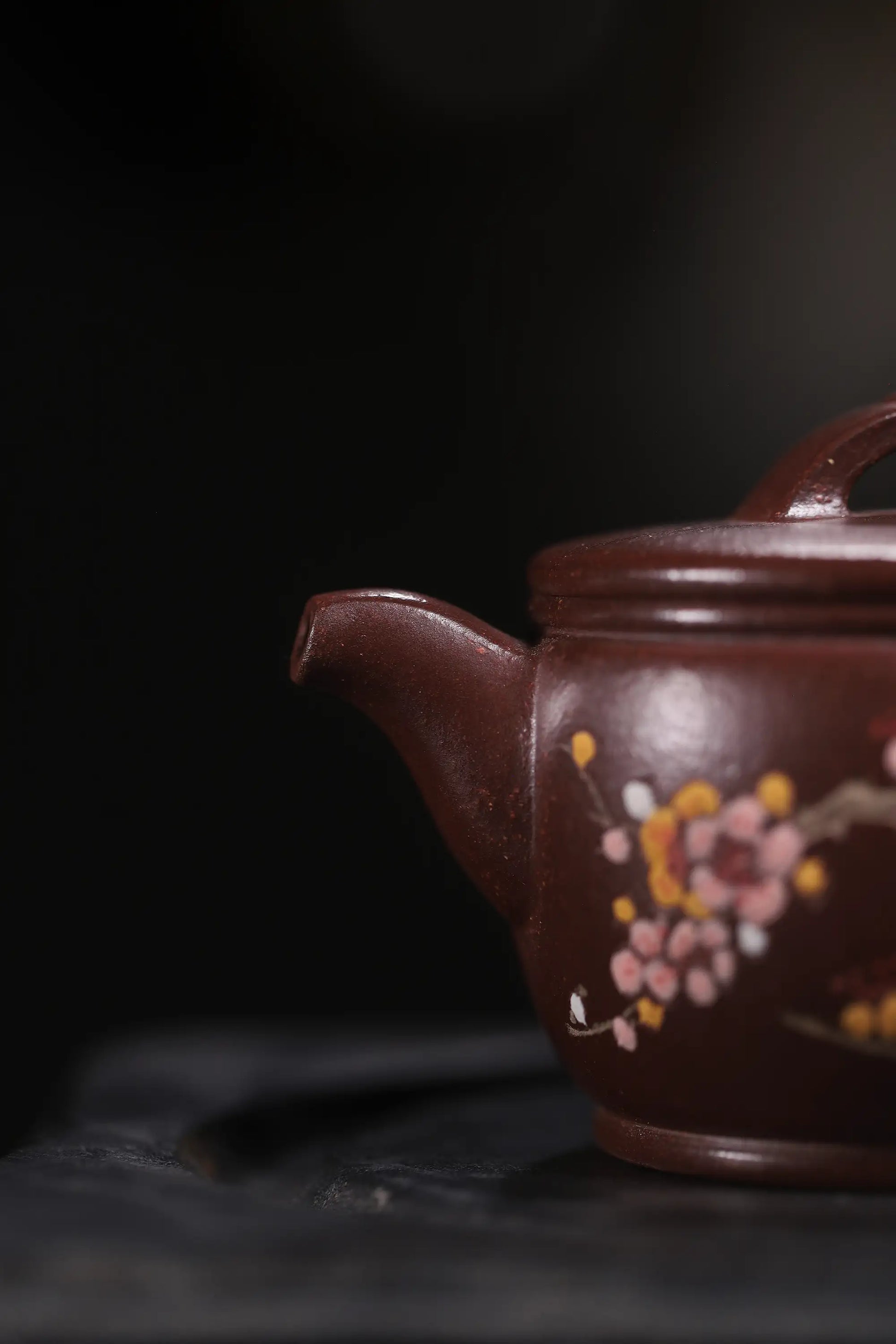 Magpie on Plum Blossom Clay-Painting Fully Handmade Dragon Blood-Purple Clay 'Han Wa' Yixing Teapot