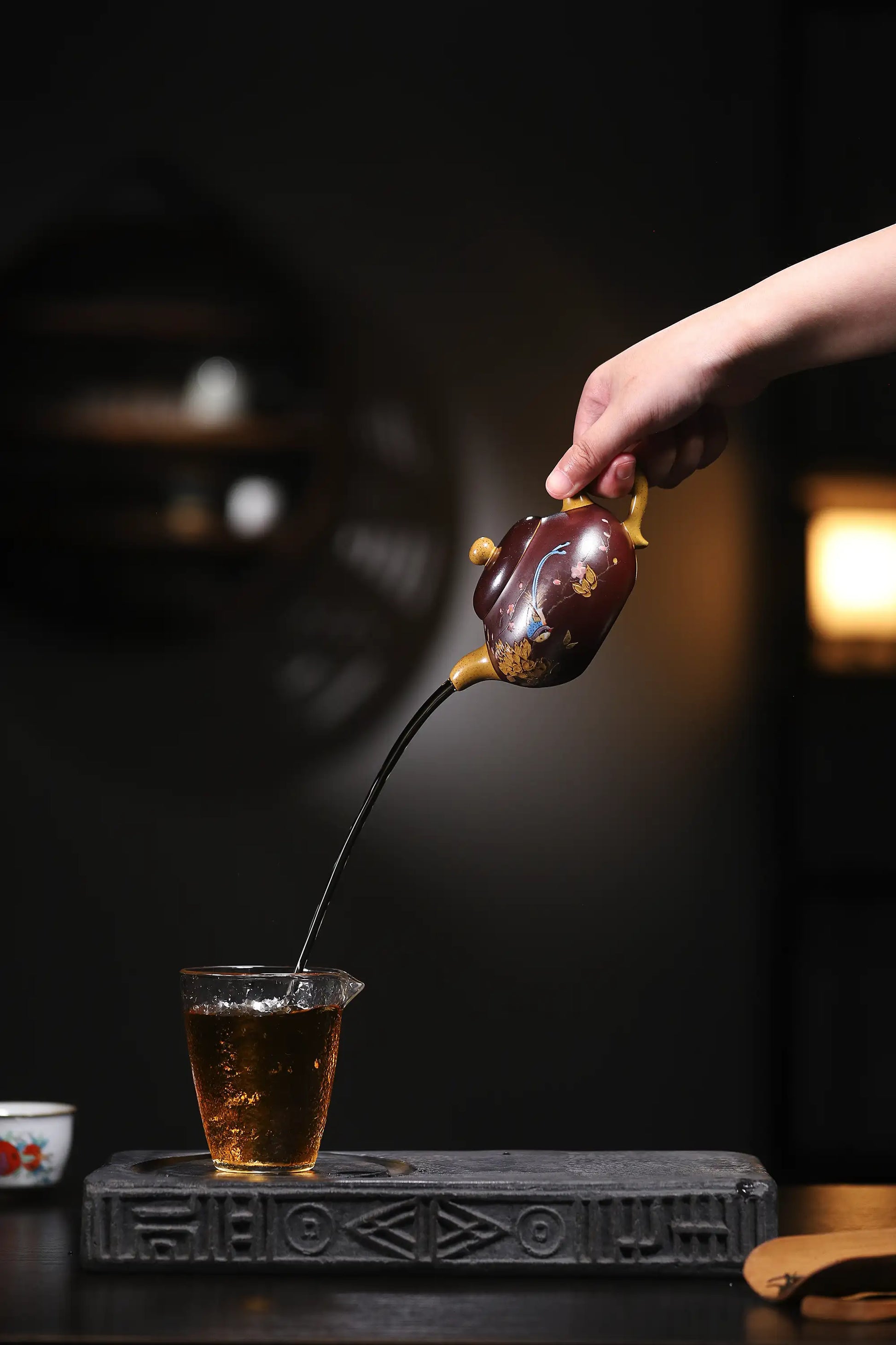 Brew your preferred tea in the pot and pour the tea liquor over the exterior. When the temperature is high, the subtle pores of the teapot expand slightly, allowing moisture to appear on the surface. Gently wipe the body with a tea maintenance cloth while it is still warm. Repeat this entire process at least three times. Note: The tea brewed during this step is not suitable for drinking.