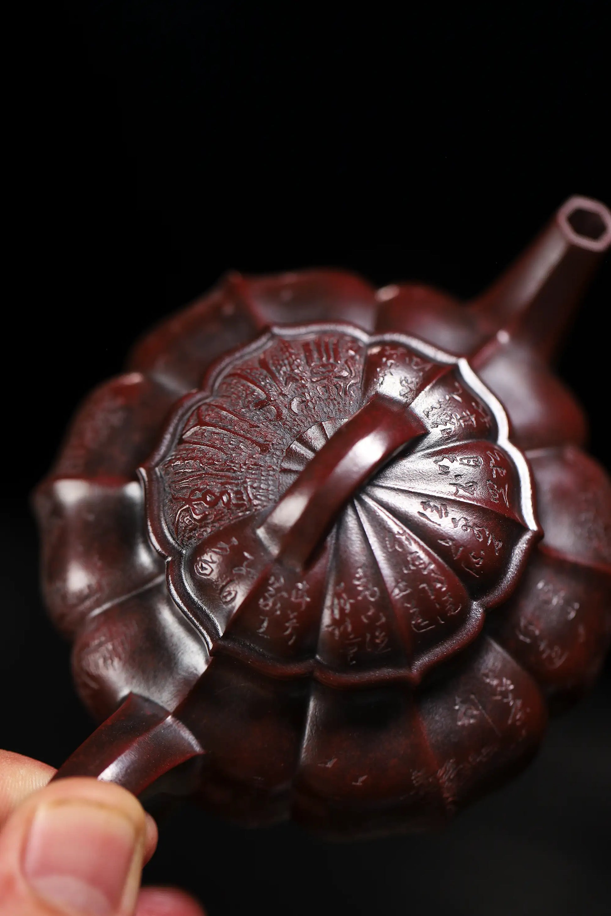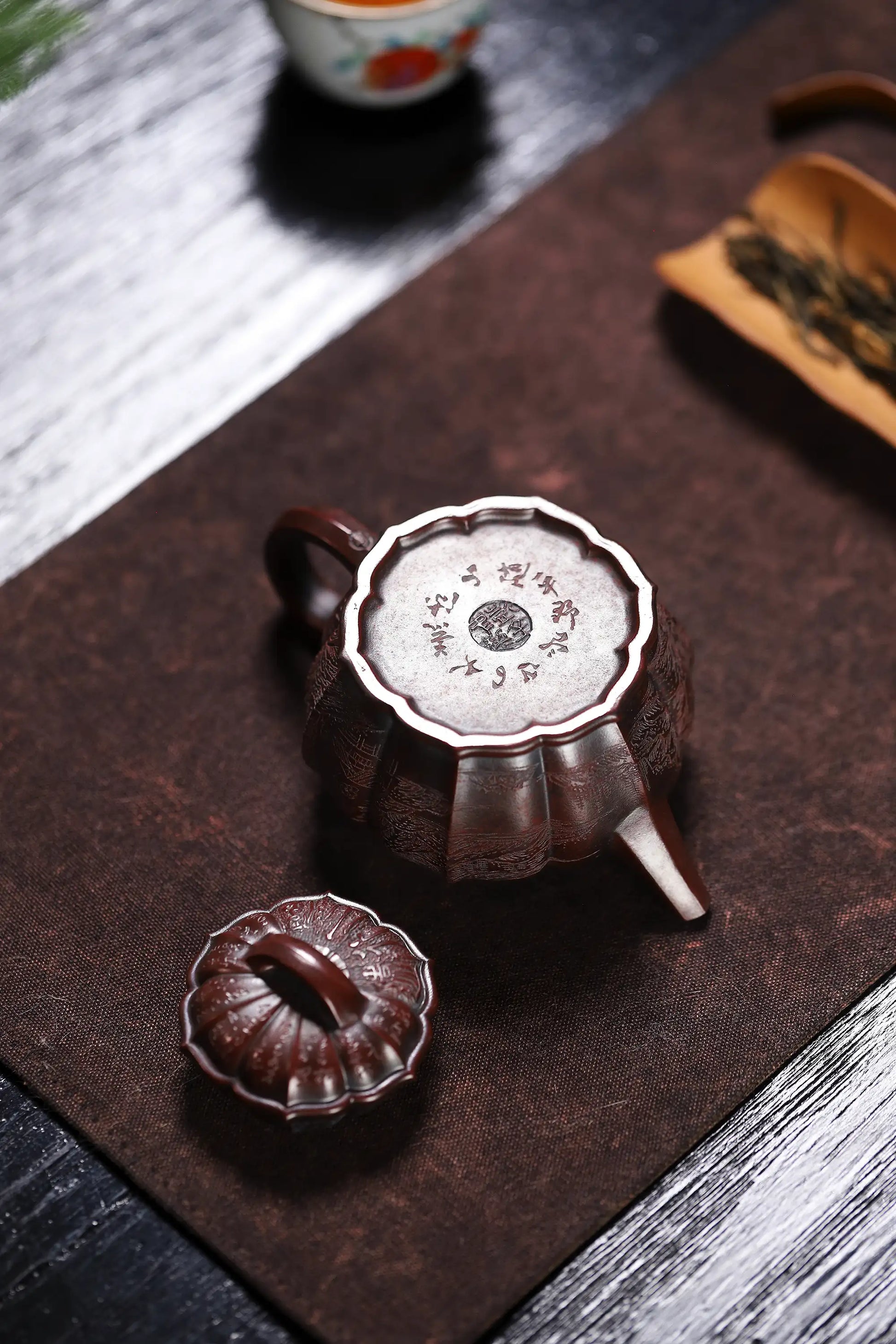Mountain Stream Journey Carving Fully Handmade Zijinsha-Purple Clay Ribbed Yixing Teapot