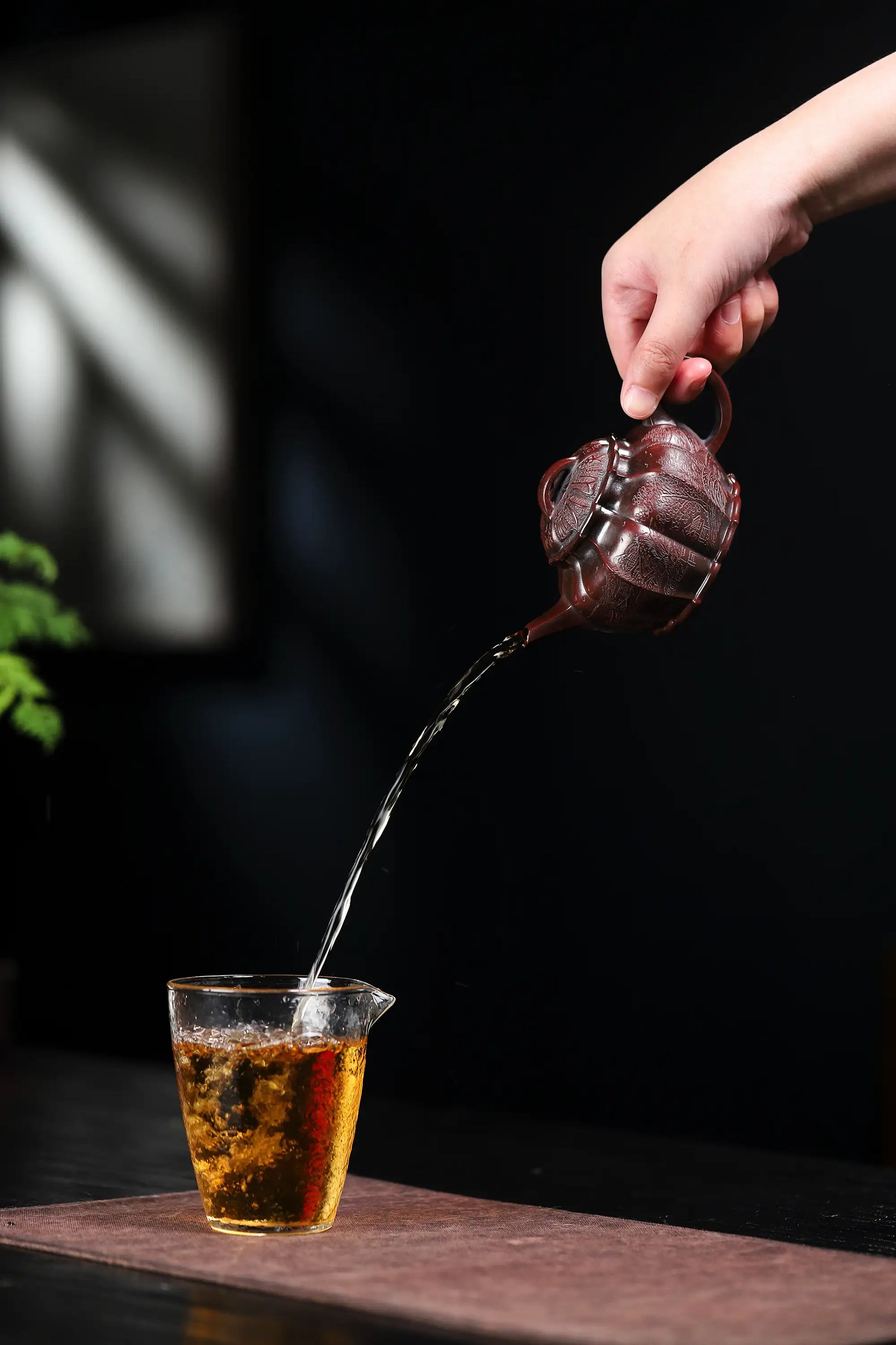 The high-quality Zijinsha-Purple clay offers excellent porosity, making it ideal for brewing Pu'erh and Oolong teas. The 150ml capacity is perfect for personal use. Its unique structure enhances the tea's aroma, resulting in a liquor that is mellow, sweet, and smooth.