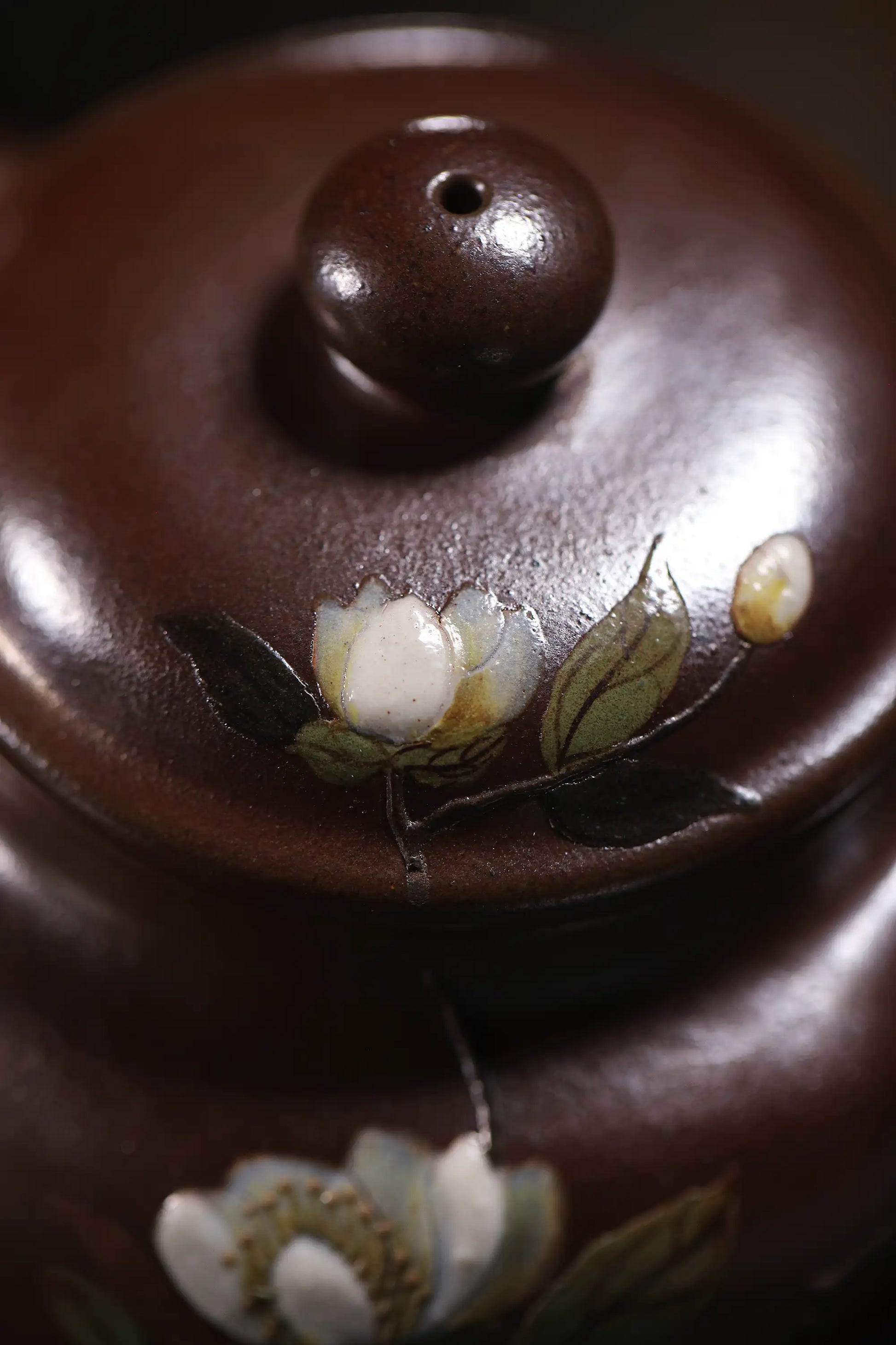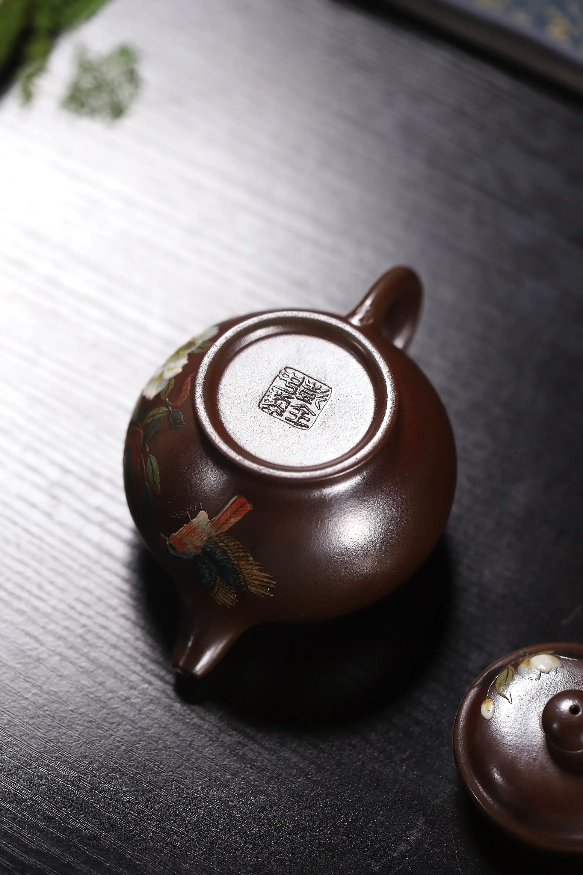 Crafted from rare Yixing Tianqing-Purple Clay, this teapot is entirely handmade and finished through ancient wood-firing technique. The clay exhibits a deep, rustic hue with exquisite texture. A master artisan has employed exquisite clay-painting techniques to depict orchid patterns on the 275ml pot body, showcasing perfect integration of traditional craftsmanship and natural aesthetics.