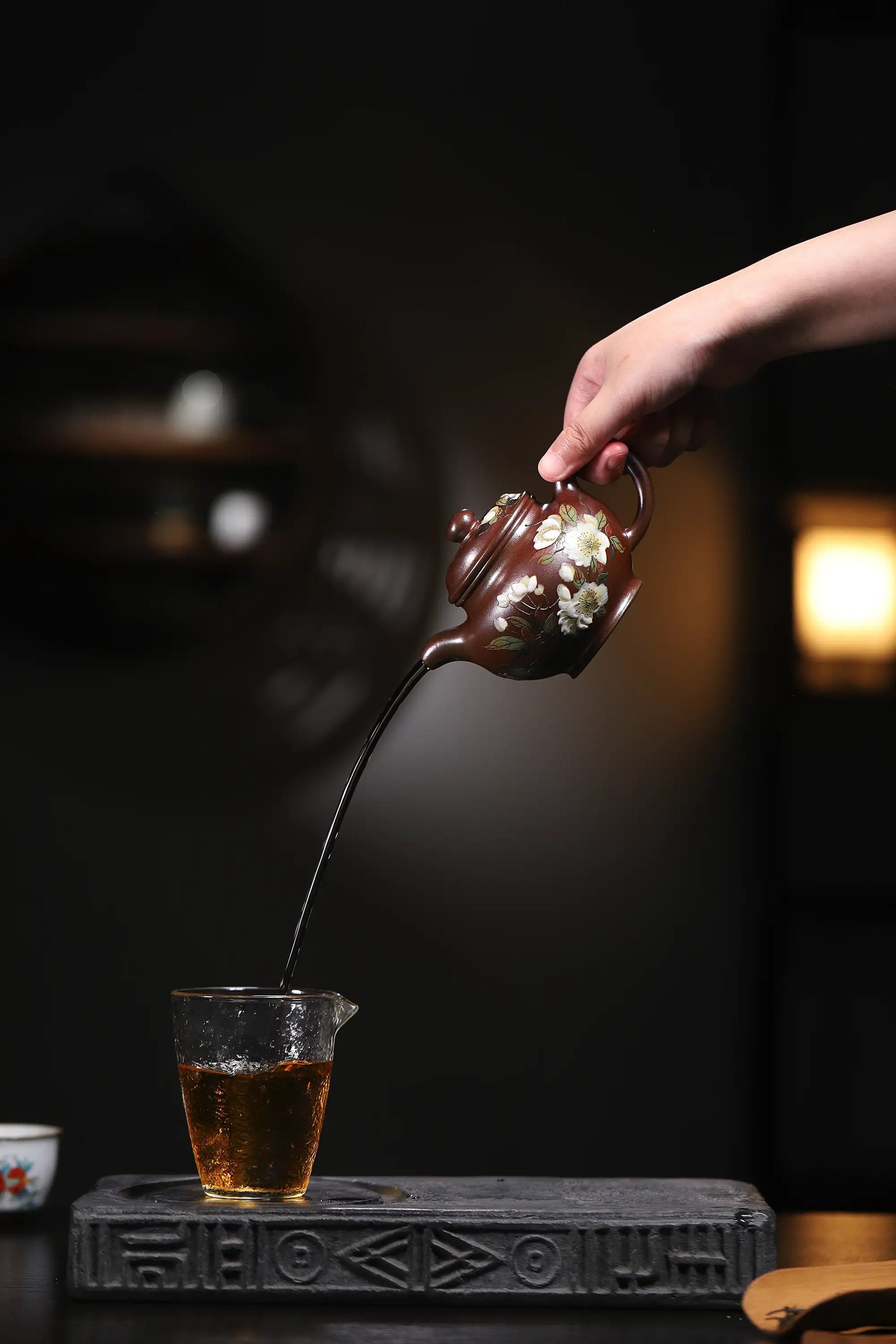 Brew your preferred tea in the pot and pour the tea liquor over the exterior. When the temperature is high, the subtle pores of the teapot expand slightly, allowing moisture to appear on the surface. Gently wipe the body with a tea maintenance cloth while it is still warm. Repeat this entire process at least three times. Note: The tea brewed during this step is not suitable for drinking.
