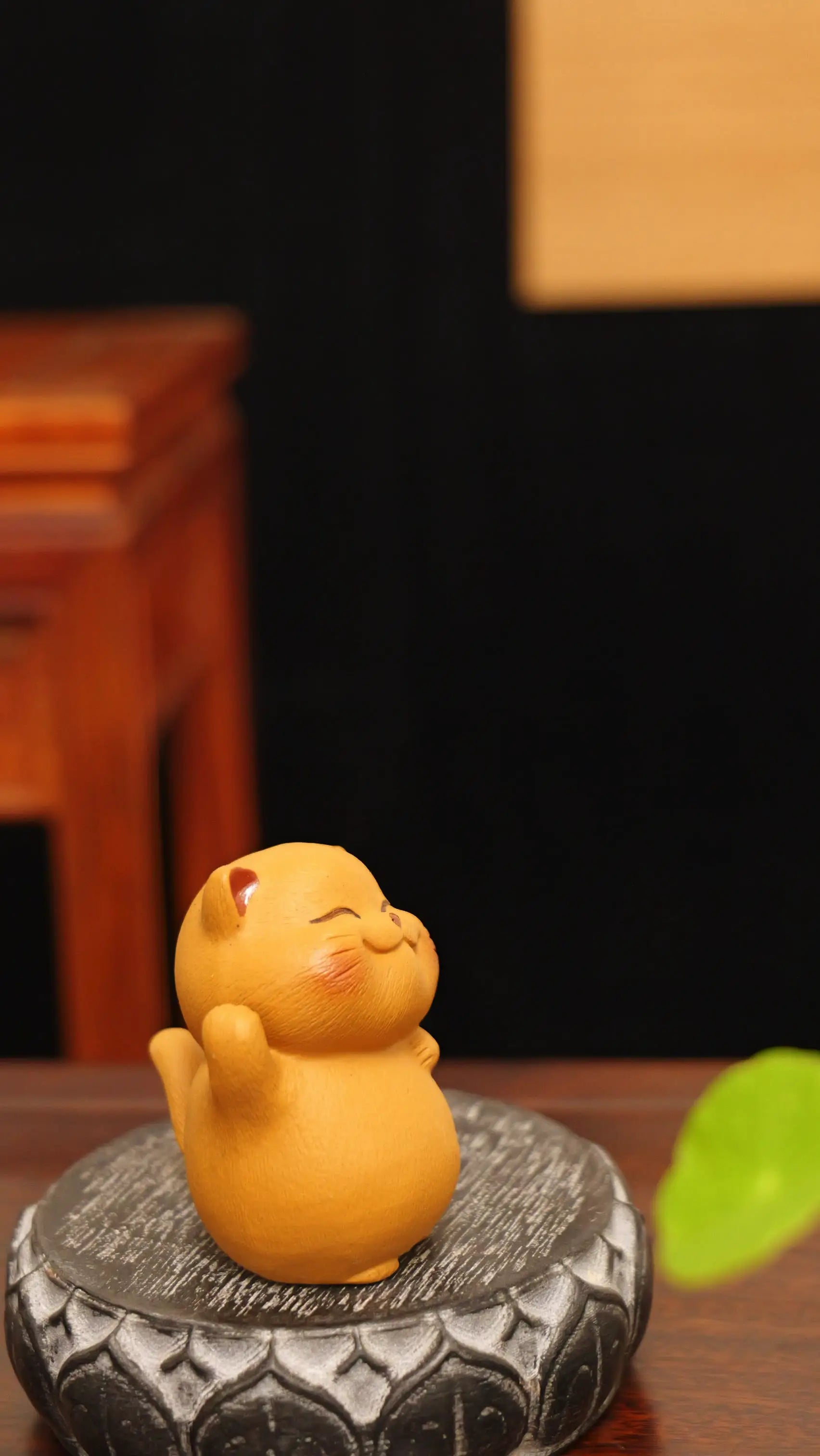 In Chinese culture, the waving cat symbolizes wealth attraction and good fortune, while yellow represents prosperity and nobility. Ideal for gifting to tea enthusiasts, business partners, or collectors to convey blessings of prosperity and luck.