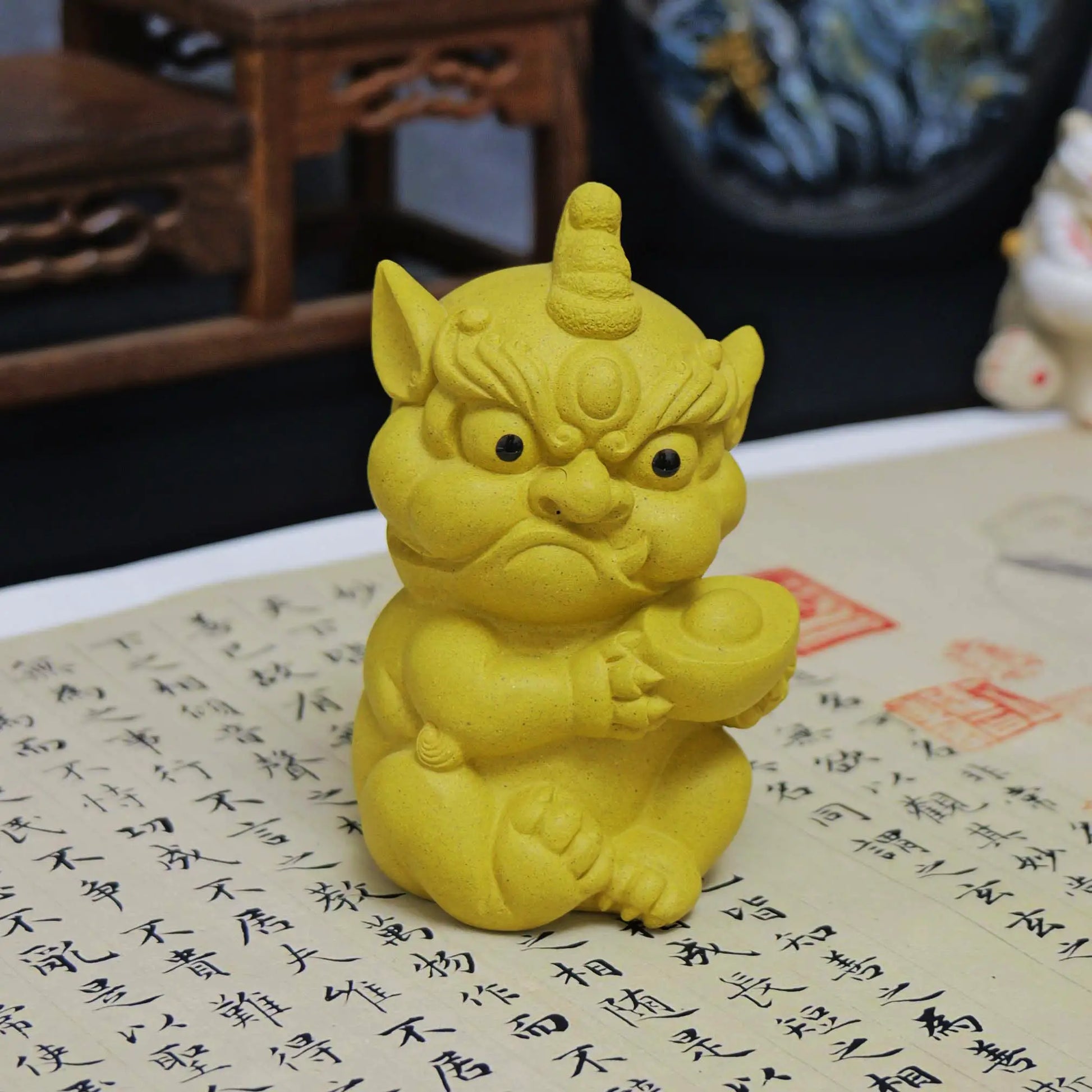 In Chinese culture, the lion holding an ingot symbolizes attracting wealth and protecting homes, while yellow represents prosperity and nobility. Ideal for gifting to tea enthusiasts, business partners, or collectors to convey blessings of wealth and safety.