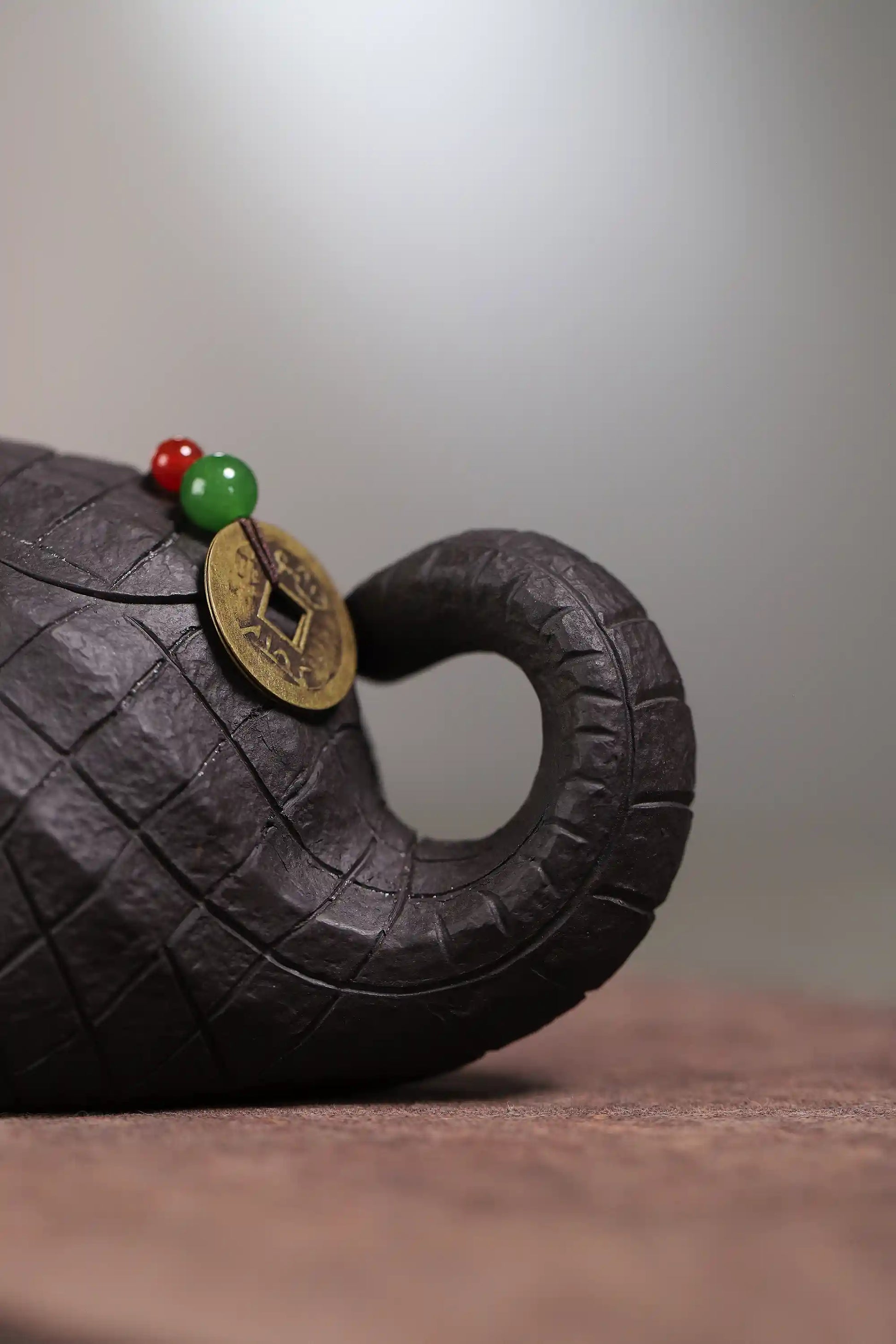 In Chinese culture, crocodile symbolizes strength, protection and wealth attraction, with ancient coin decorations adding prosperity symbolism. Ideal for gifting to tea enthusiasts, business partners or collectors to convey success and good fortune.