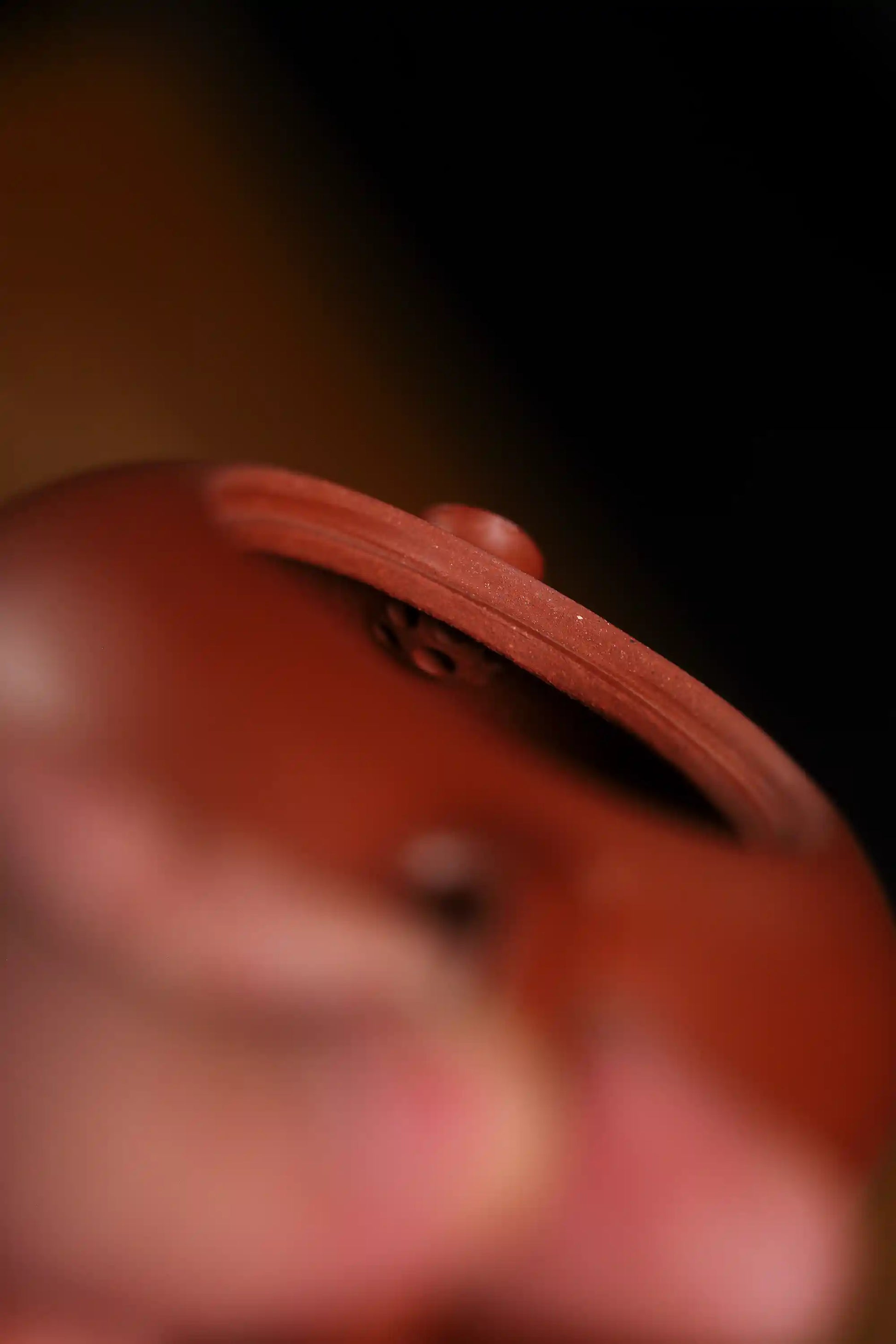 Meticulously handcrafted from natural Yixing Zisha clay, this teapot measures approximately 8cm (H) × 12cm (W). The clay is fine and smooth, fired in a traditional kiln to achieve an elegant reddish-brown hue. The pot body is round and full, with a lid that fits perfectly, showcasing authentic Zisha craftsmanship.