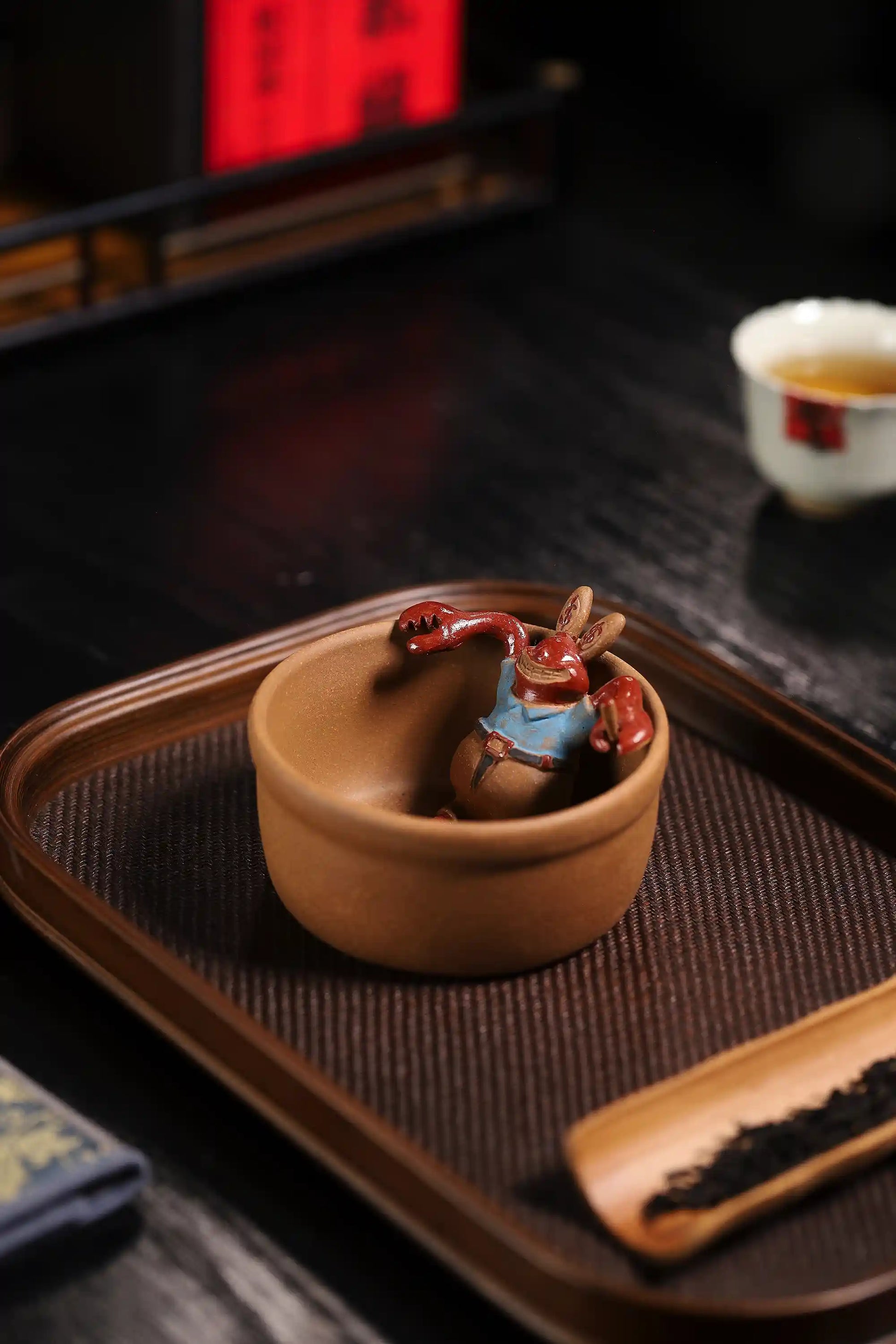 The porous Zisha clay maintains ideal tea temperature and develops an amber patina through tea nurturing, enriching the painted artwork. The character's arms naturally fit finger curves for anti-slip ergonomic grip.