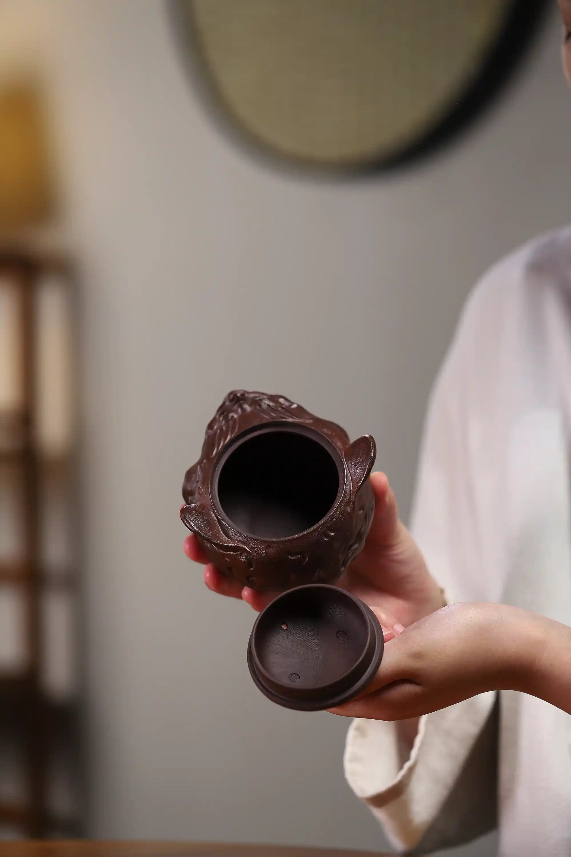 Nurtured over time with tea liquor, the teapot develops a smooth, jade-like patina, enhancing its gloss and depth of color. It offers a comfortable hold and precise pouring, adding an auspicious and culturally rich dimension to every tea session.