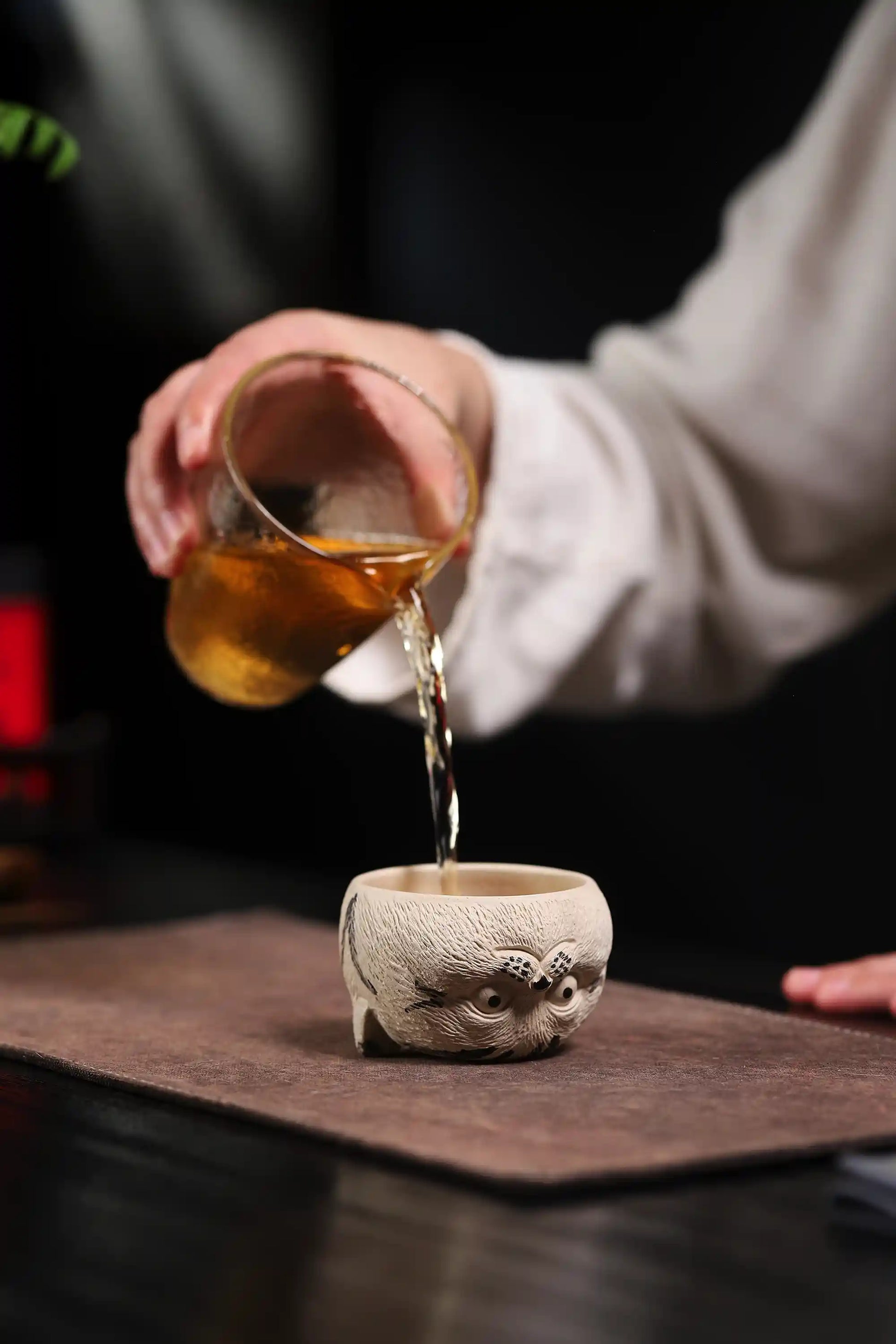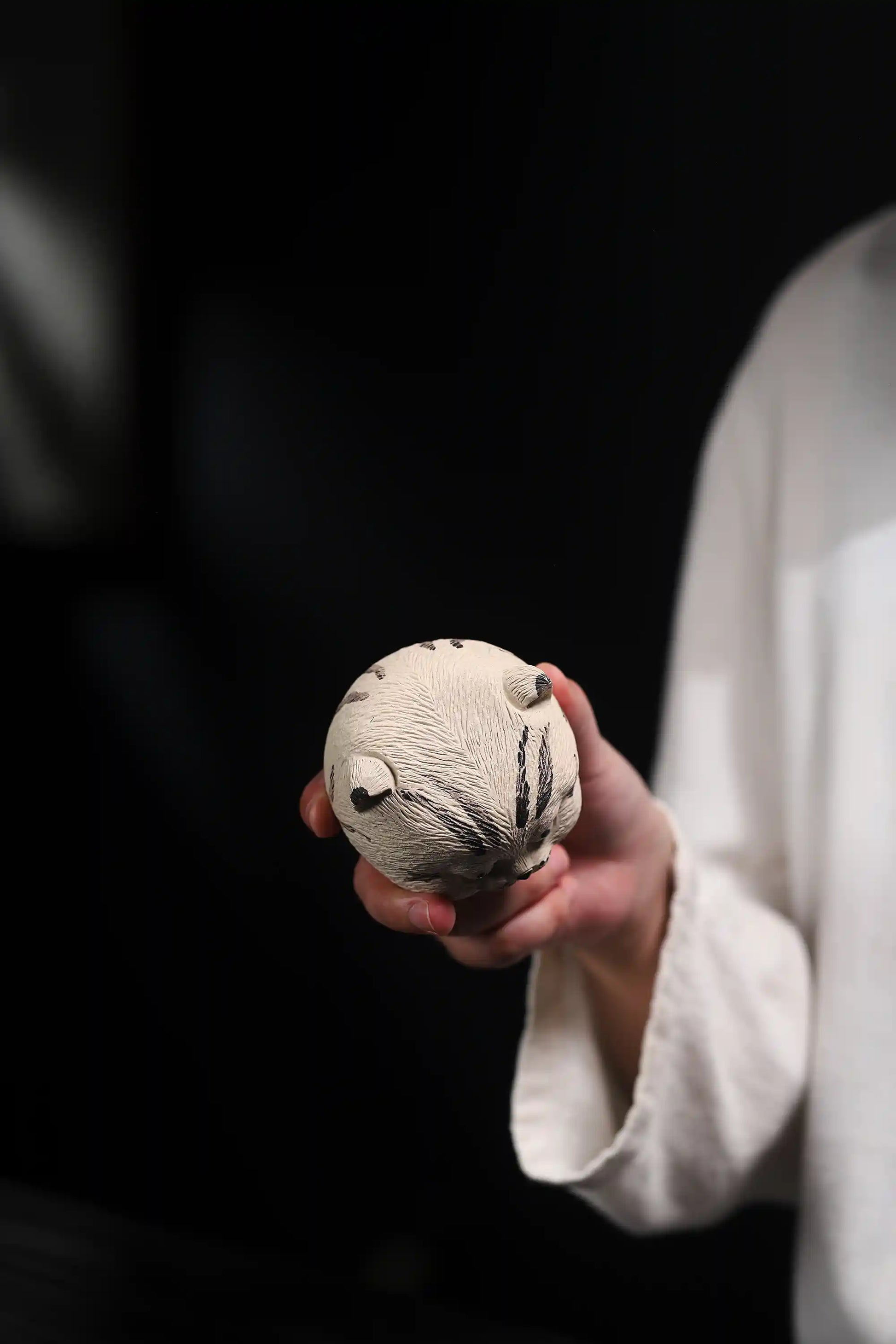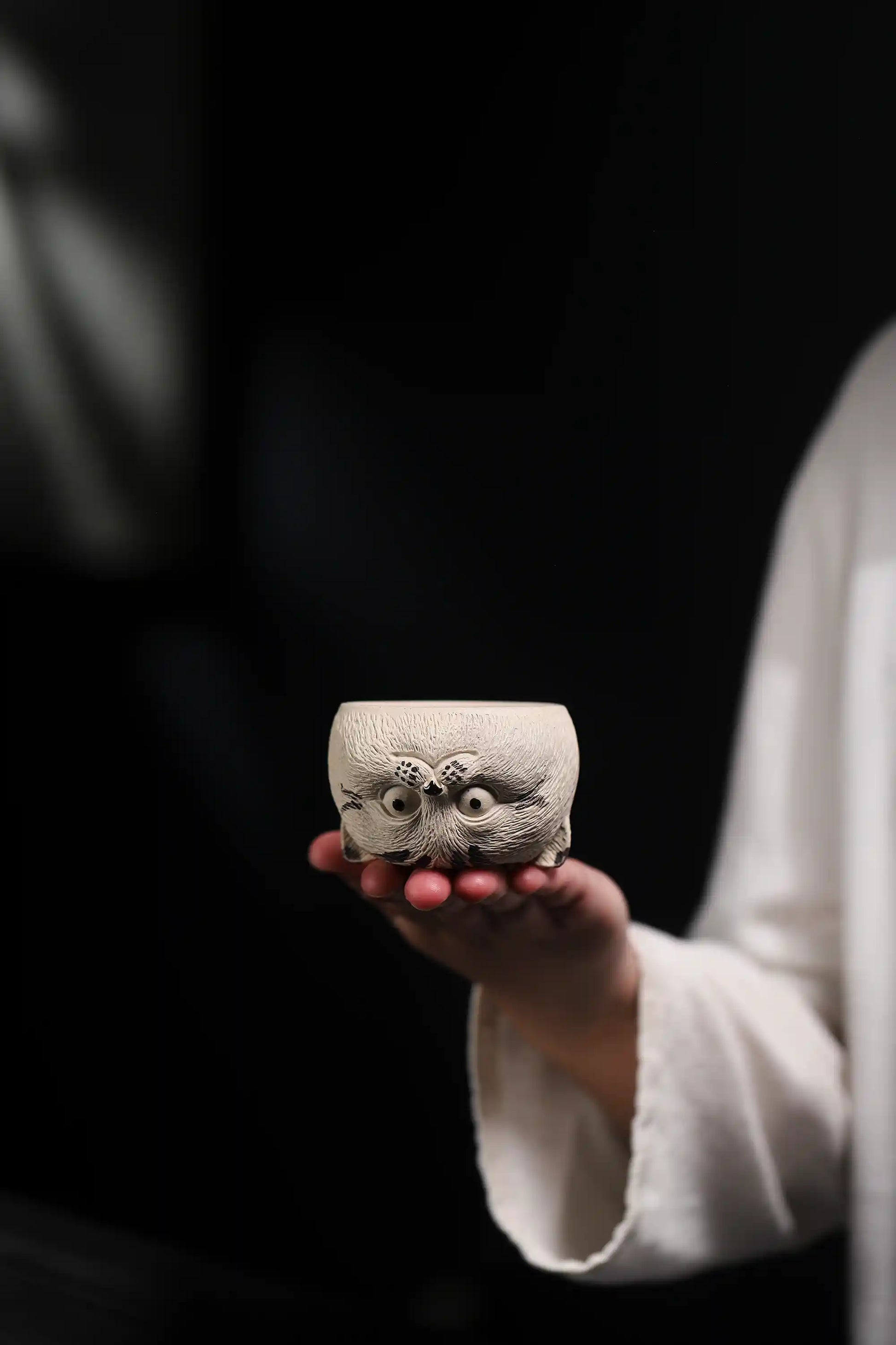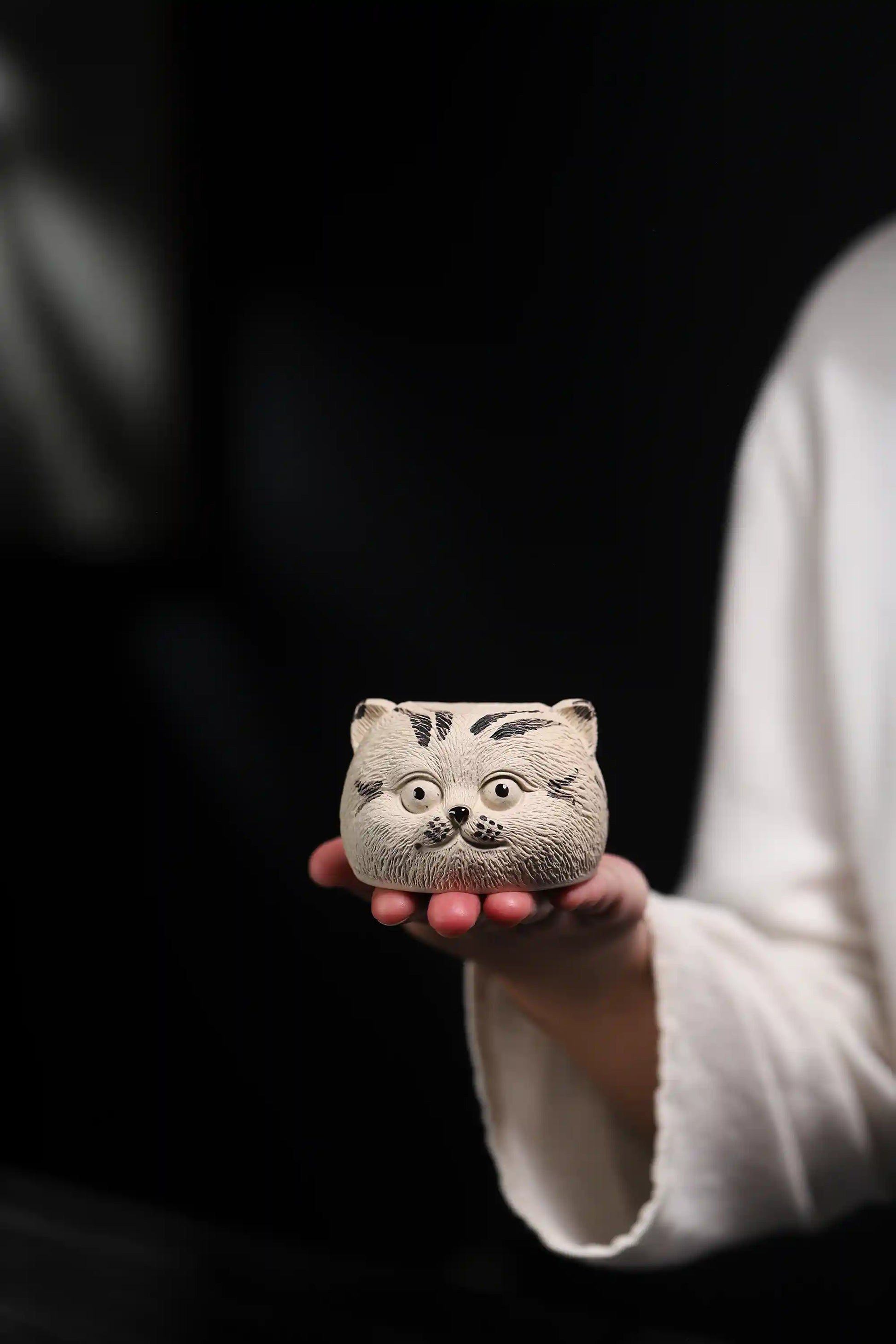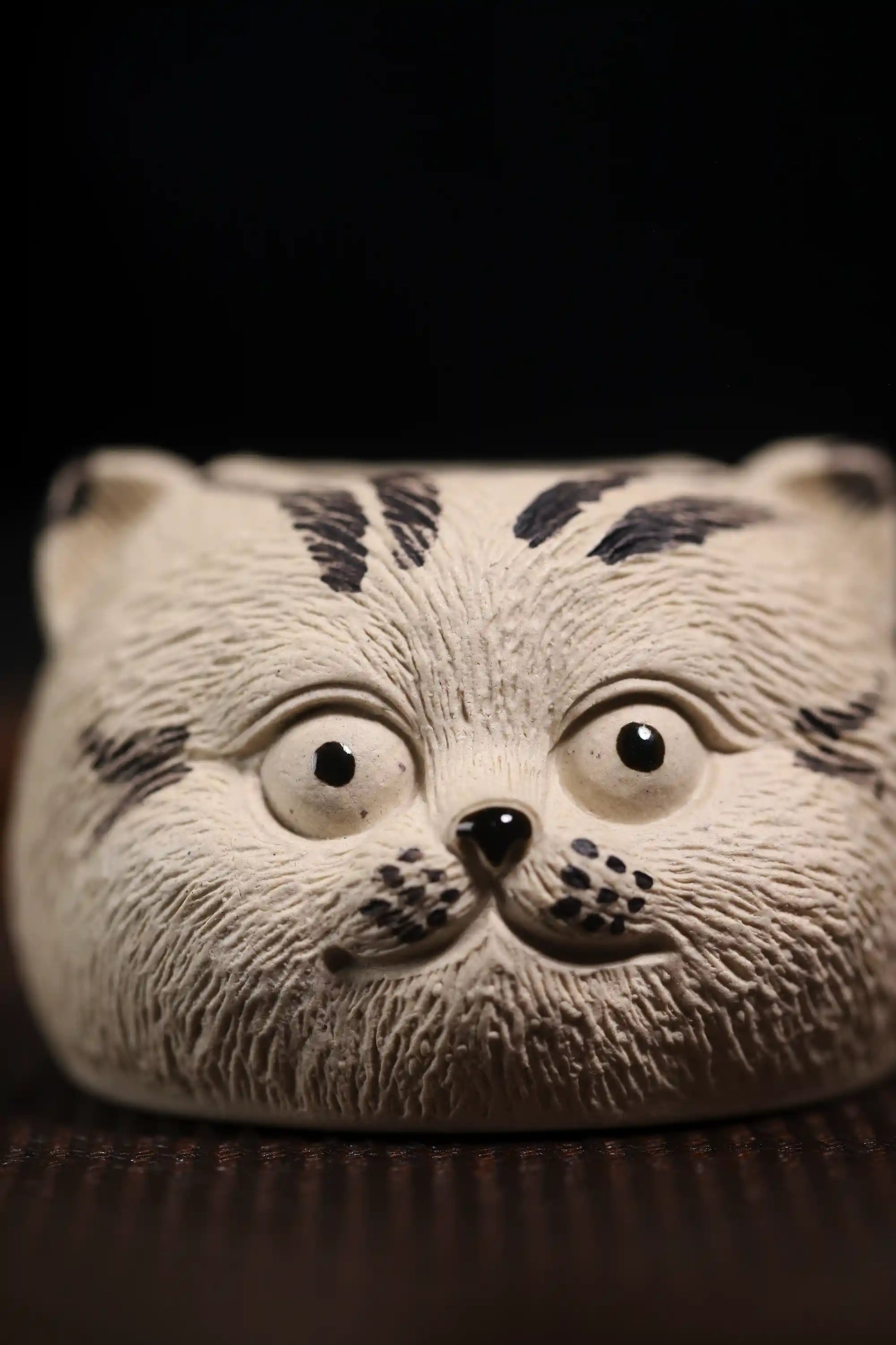 Innovatively combines white cat head shape with teacup functionality: top opening serves as drinking spout, cat ears naturally form heat-resistant holding points. Smooth glazed interior ensures easy cleaning, while exterior preserves hand-carved texture. Flat base provides stable placement.